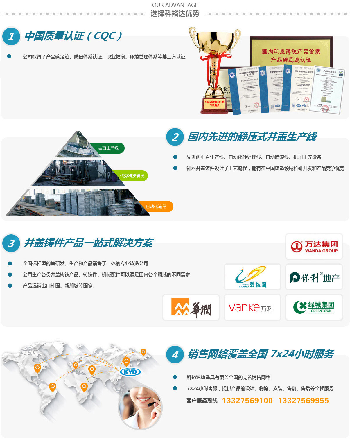 晉城市科裕達(dá)鑄造有限公司,位于山西省晉城市南村鎮(zhèn)智能綠色鑄造創(chuàng)新產(chǎn)業(yè)園區(qū),成立于2014年2月,注冊資金2億元整,產(chǎn)量10萬噸。經(jīng)過這些來的發(fā)展,已經(jīng)成為全國集研發(fā)、生產(chǎn)、銷售各類球墨鑄鐵井蓋、箅子產(chǎn)品于一體的專業(yè)鑄造公司,是已知國內(nèi)較大的球墨鑄鐵井蓋生產(chǎn)基地。2016年10月,公司順利通過了二級安全生產(chǎn)標(biāo)準(zhǔn)化的評審,正式成為一家二級安全生產(chǎn)標(biāo)準(zhǔn)化企業(yè)。2017年3月,山西省安全生產(chǎn)監(jiān)督管理局授予公司2016年冶金工貿(mào)行業(yè)“安全生產(chǎn)先進(jìn)單位”稱號。2017年11月被山西省中小企業(yè)局授予“專精特新”中小企業(yè)榮譽(yù)。2020年8月被認(rèn)定為國家高新技術(shù)企業(yè)。2021年5月被中國鑄造協(xié)會認(rèn)定為“單項冠軍企業(yè)”。2021年9月被山西省中小企業(yè)局授予“專精特新小巨人”企業(yè)榮譽(yù)。2022年被中國鑄造協(xié)會認(rèn)定為第四屆鑄造行業(yè)排頭兵企業(yè)。2023年7月被工信部認(rèn)定為“國家級專精特新小巨人”企業(yè)榮譽(yù)。2024年被省工信廳認(rèn)定有“省級綠色工廠”及“省級企業(yè)技術(shù)中心”。